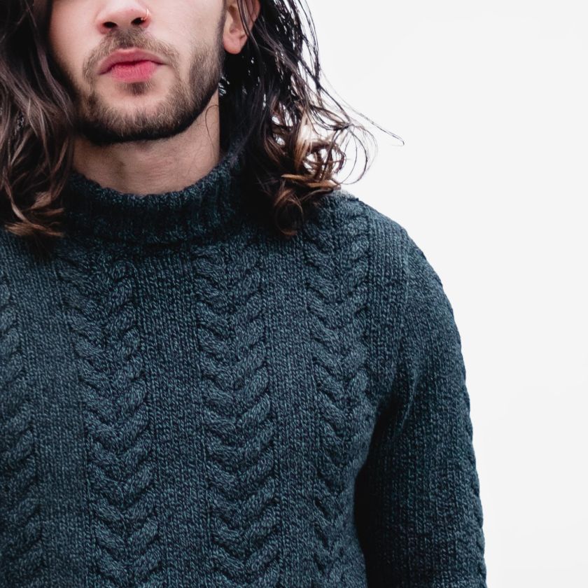 • Rounded neck with long sleeves and cable-knit finish