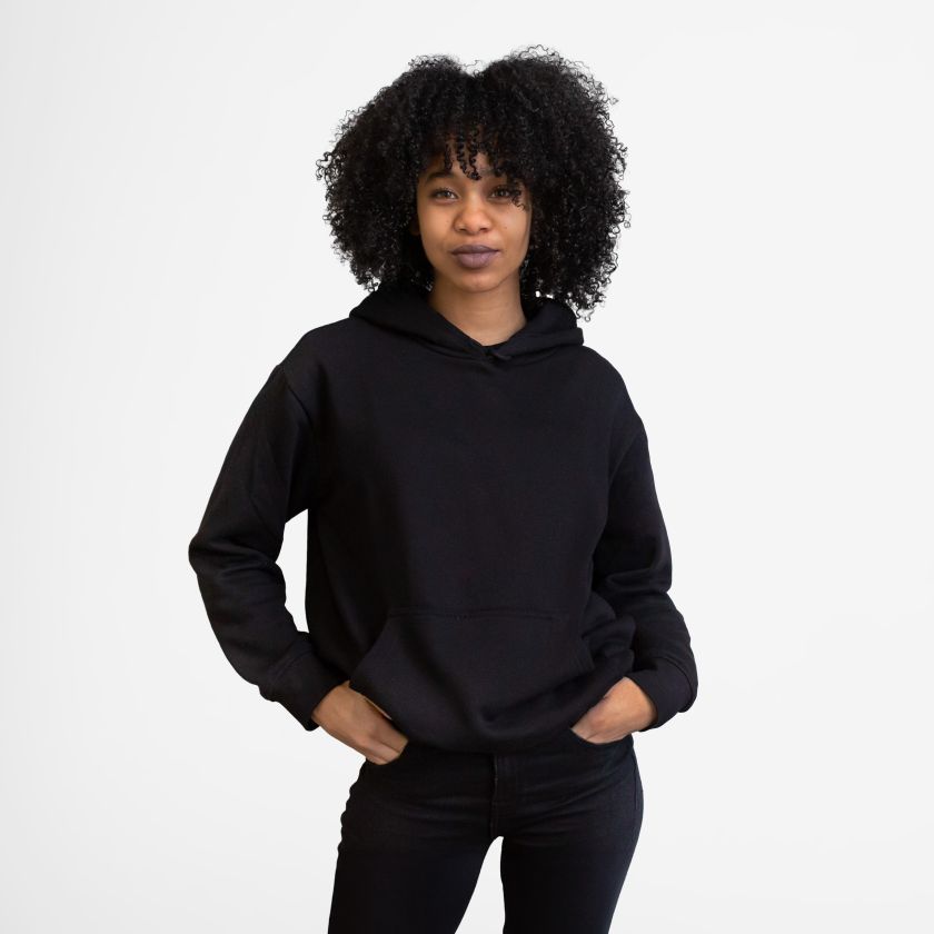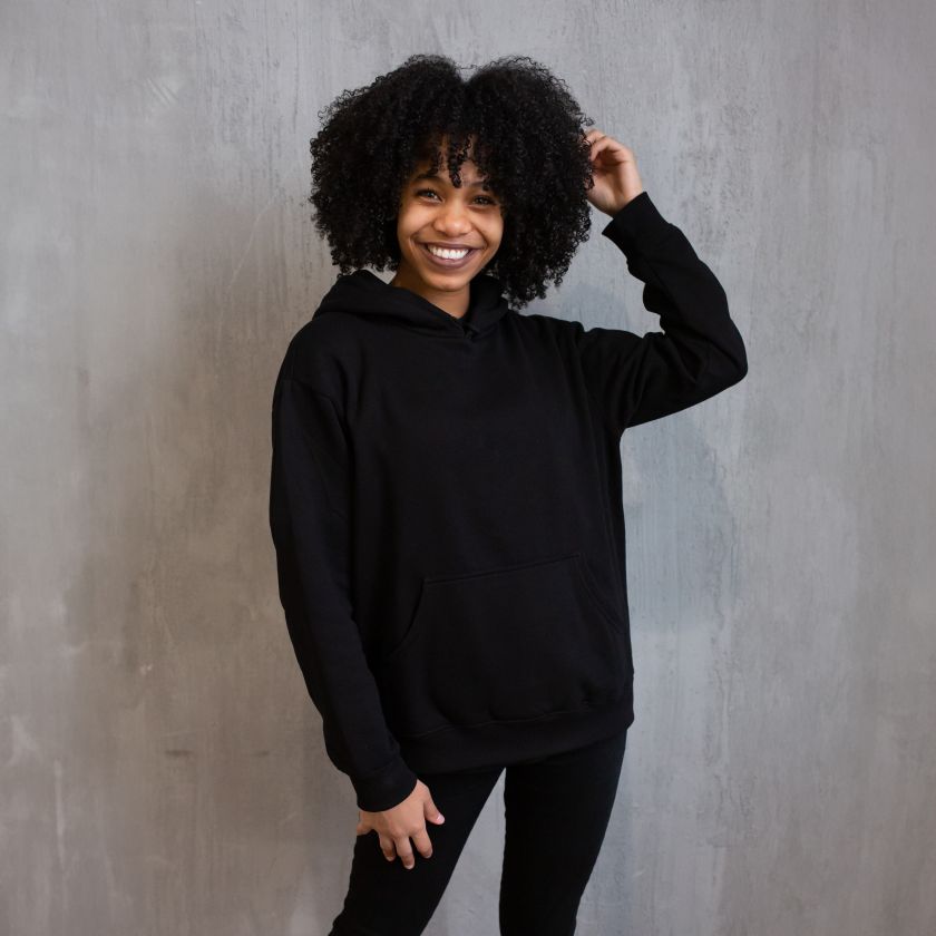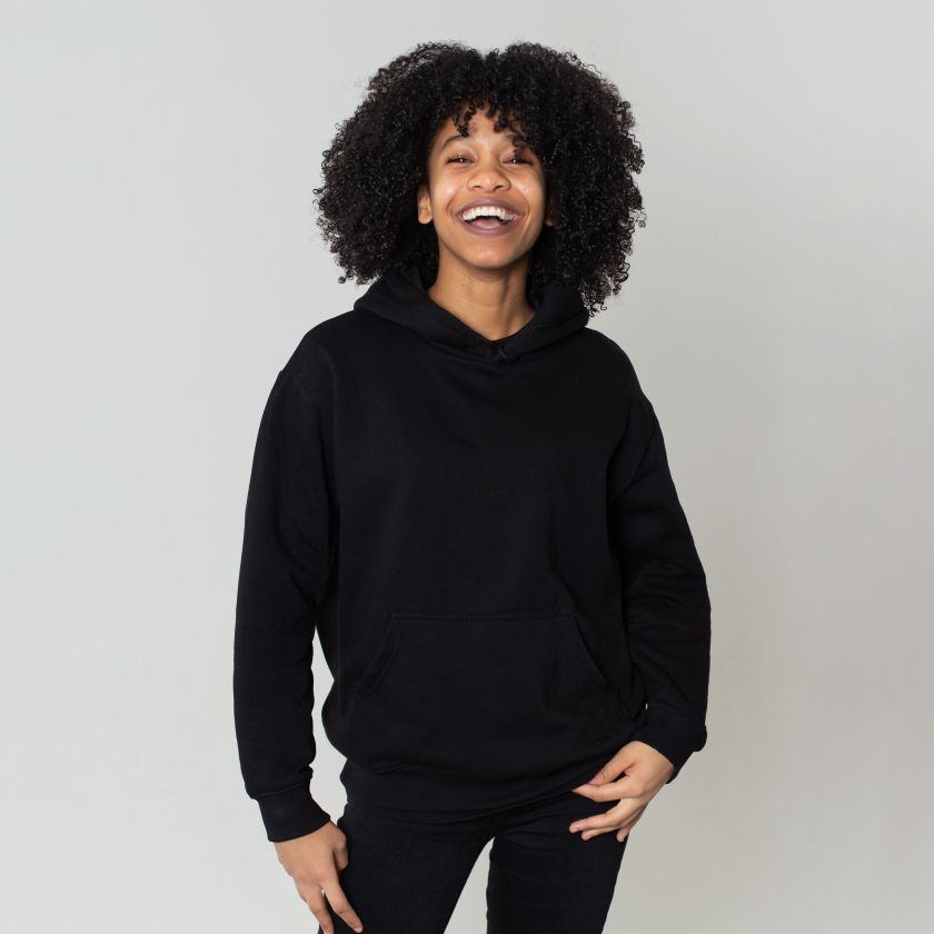• Oversized, relaxed fit with hood and long sleeves