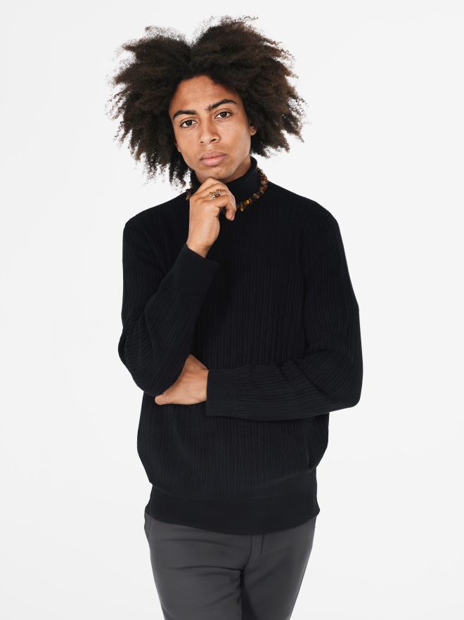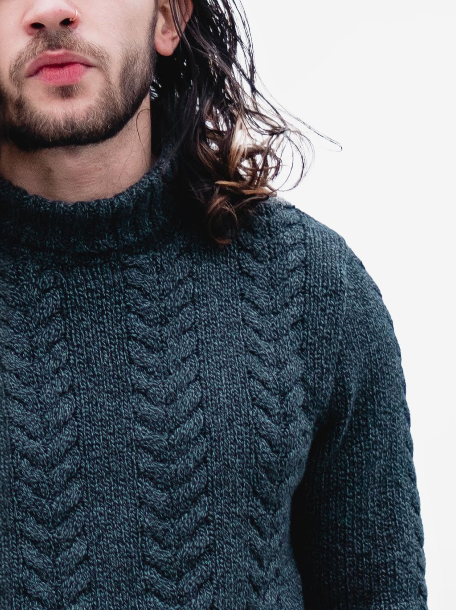 • Rounded neck with long sleeves and cable-knit finish